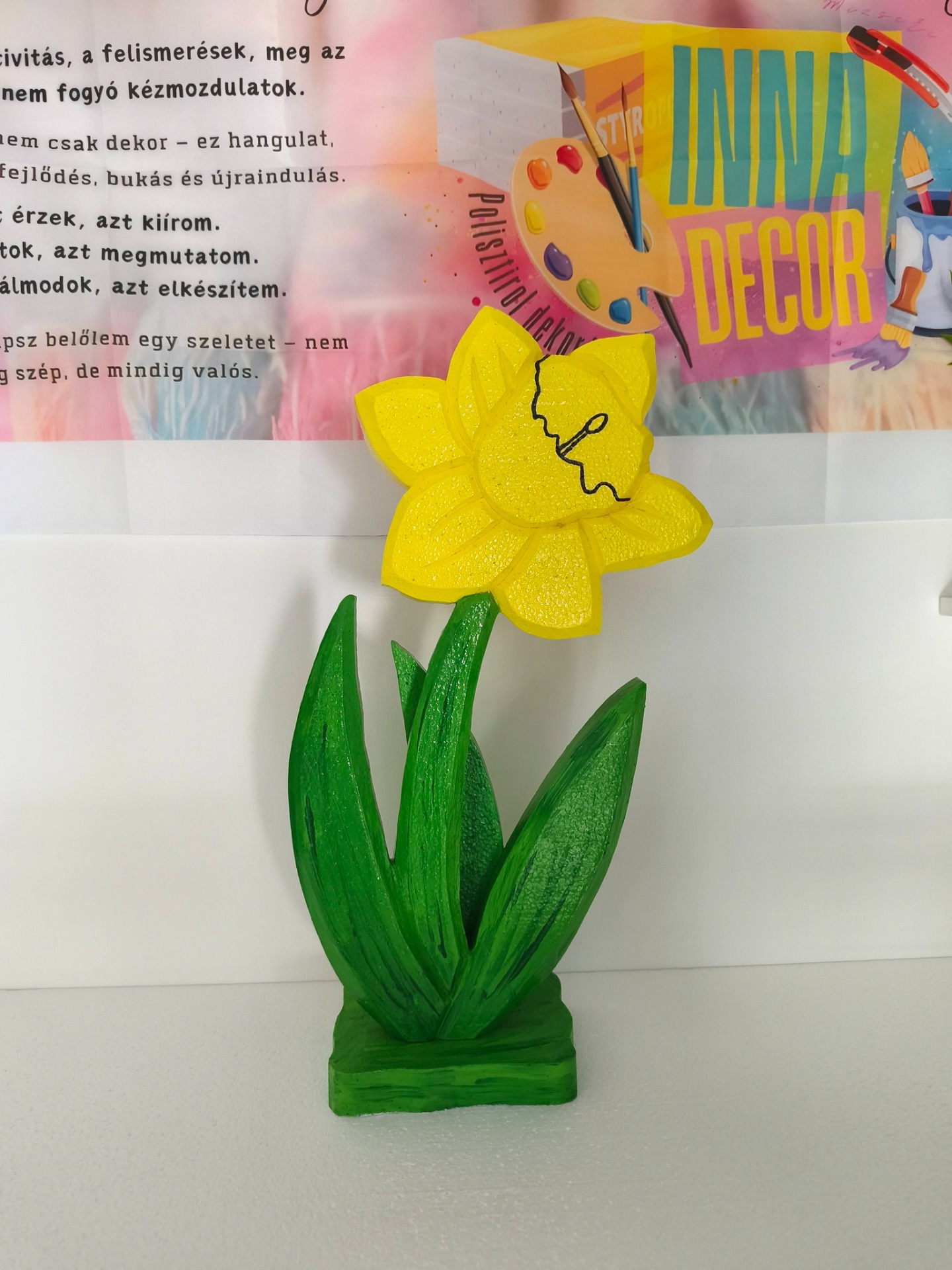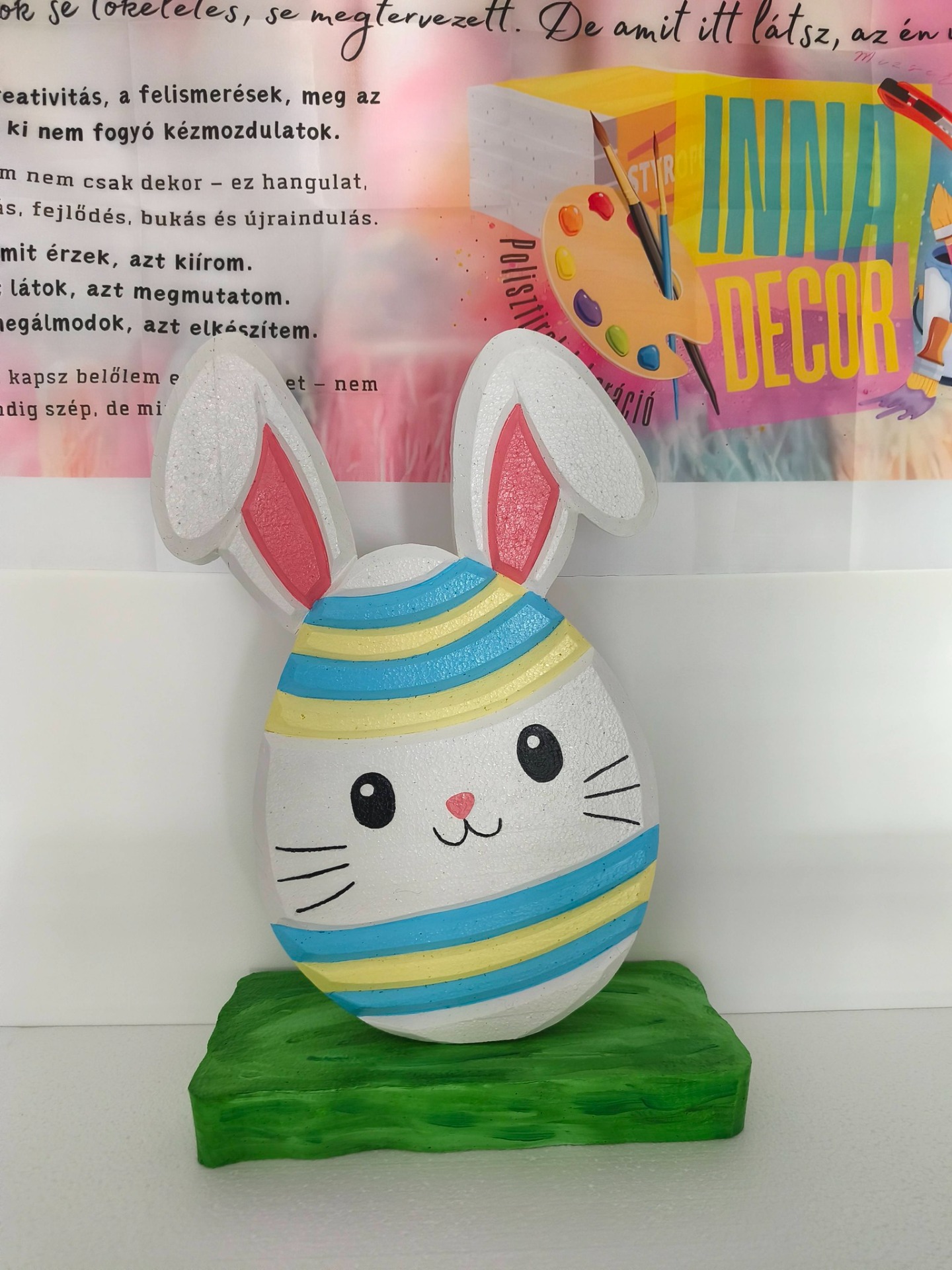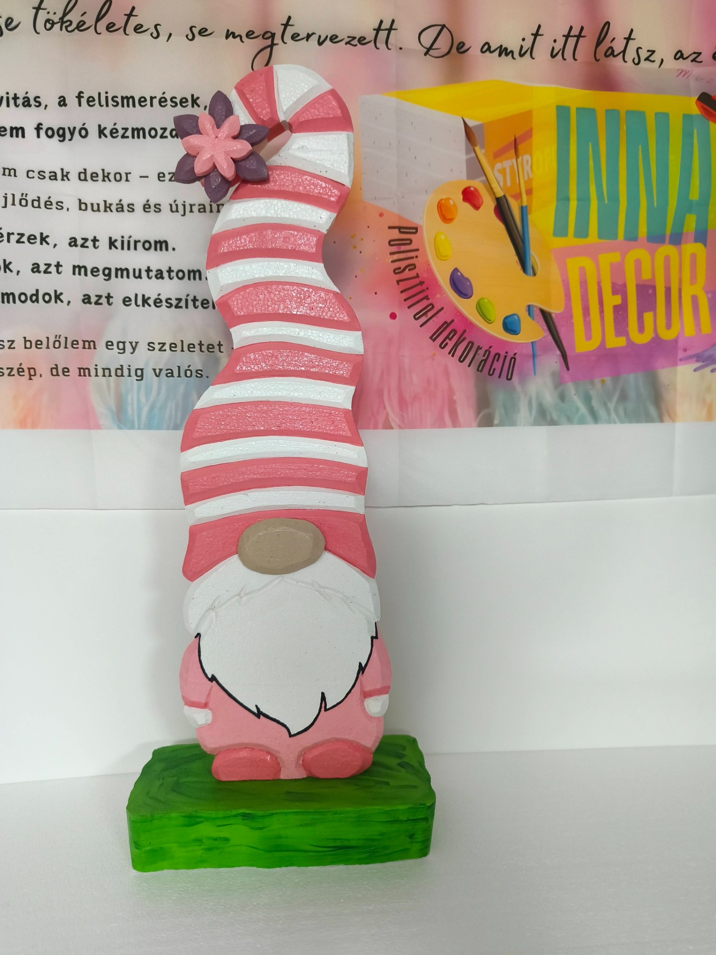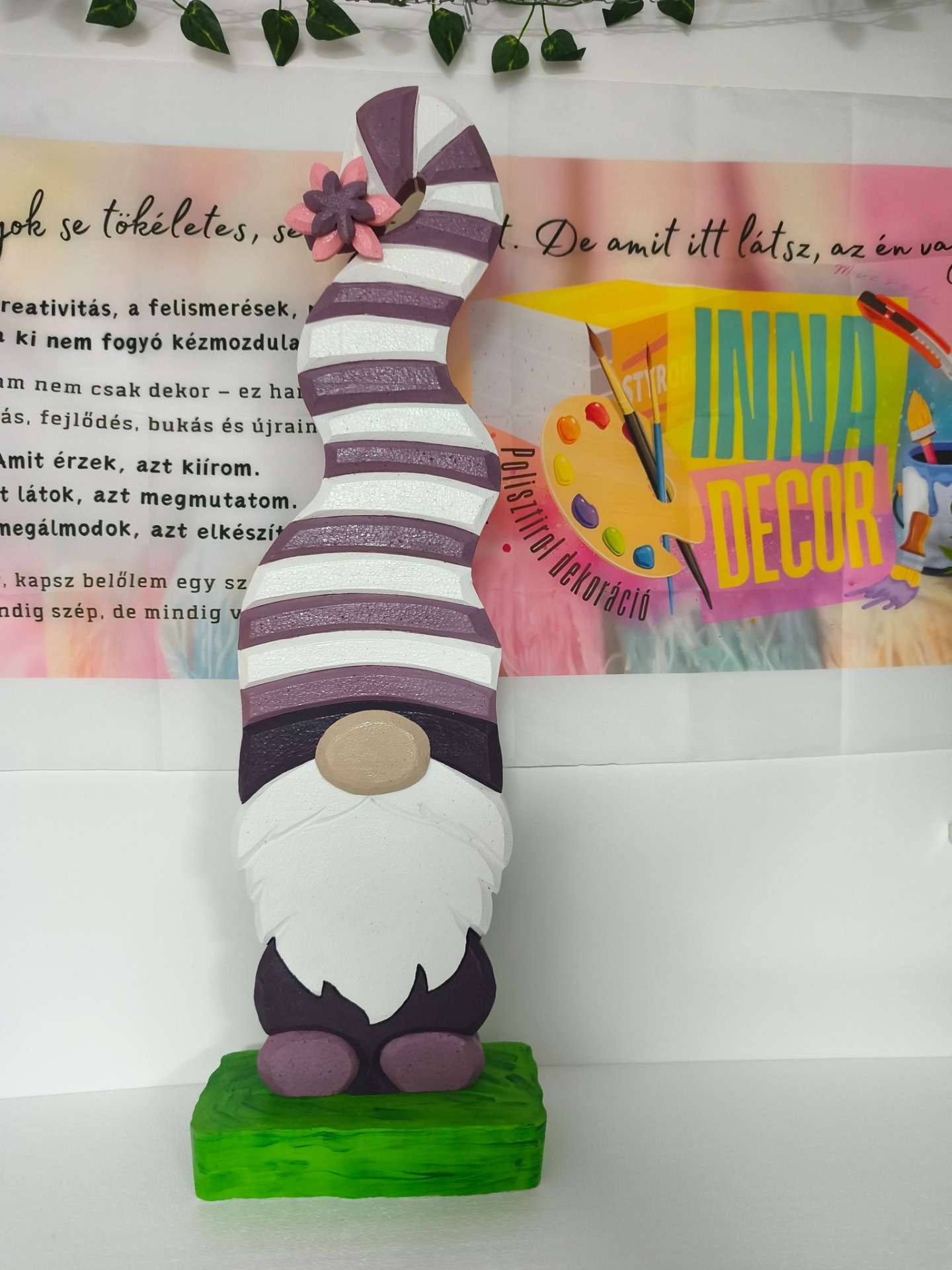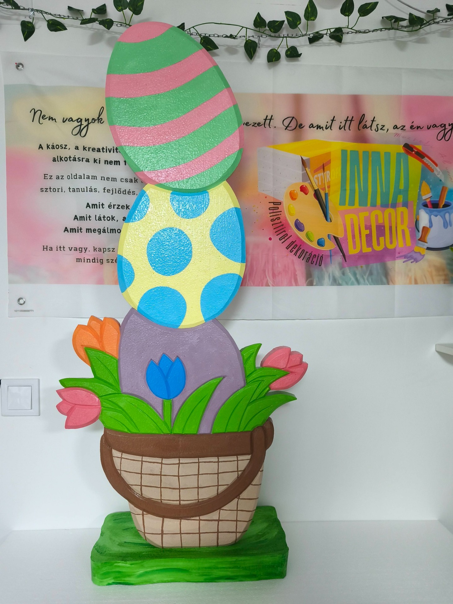 Az INNAdecor dekorációk 3 cm vastag EPS hungarocellből készülnek, kézzel vágva, festve és lakkozva. A felület UV-védő lakkozással van lezárva, amely segít ellenállóbbá tenni az időjárás viszontagságaival szemben.